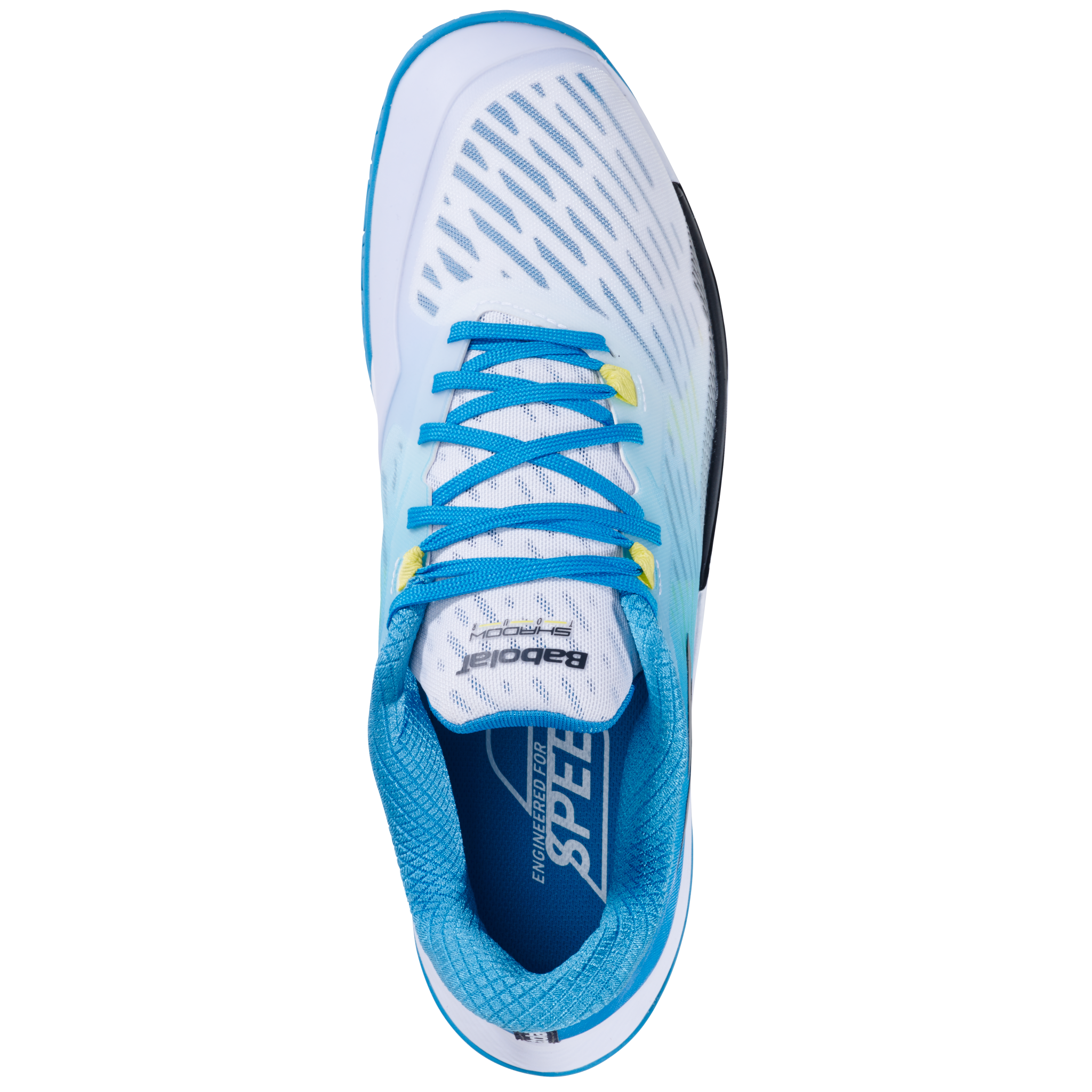 Thanks to its ultralight, breathable upper, the Shadow Tour weighs just 280 g in EU size 42.5. You'll feel like you're flying between each strike of the shuttlecock. 280 g