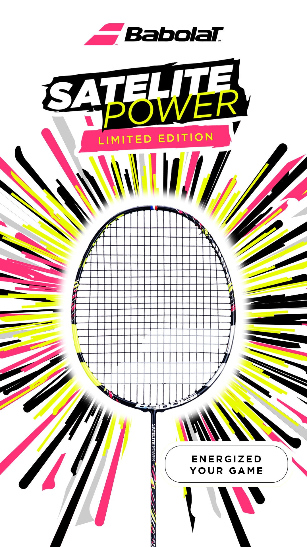 An aerodynamic frame integrating the bumper and grommets increases your racquet head speed and spin generation.